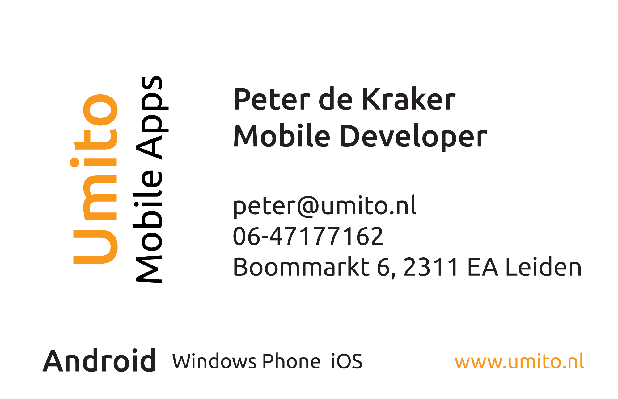 My name is Peter de Kraker and I am a Dutch freelance Android developer with my own company Umito. Besides developing a few apps of my own I also develop for other people/businesses. Most of the time these jobs involve porting apps from iOS to Android or implementing Photoshop/Illustrator/Sketch graphical designs. These days I also develop for iOS in Objective-C / Swift, for example when responsible for both Android and iOS app versions. I am developing on Android since 2010 and have useful experience. The challenge with Android is always that the design needs to work on many different devices, with different screensizes and orientations. I really enjoy delivering on that aspect, to make sure that the design fits the target group. If you are looking for a freelance developer for a new app, or if you are looking for someone who can port your app to Android, don't hesitate and contact me! |